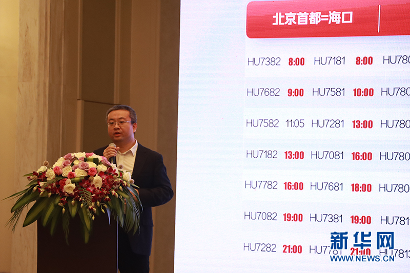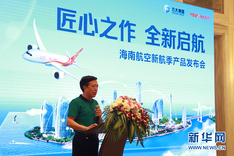 海南航空副总裁张国平在发布会上致辞。新华网发