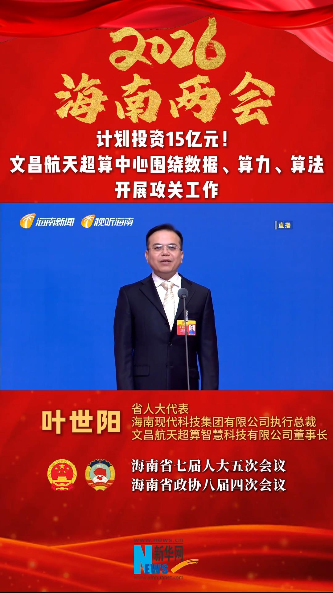 海南两会代表委员通道|叶世阳:计划投资15亿元!文昌航天超算中心围绕数据、算力、算法开展攻关工作
