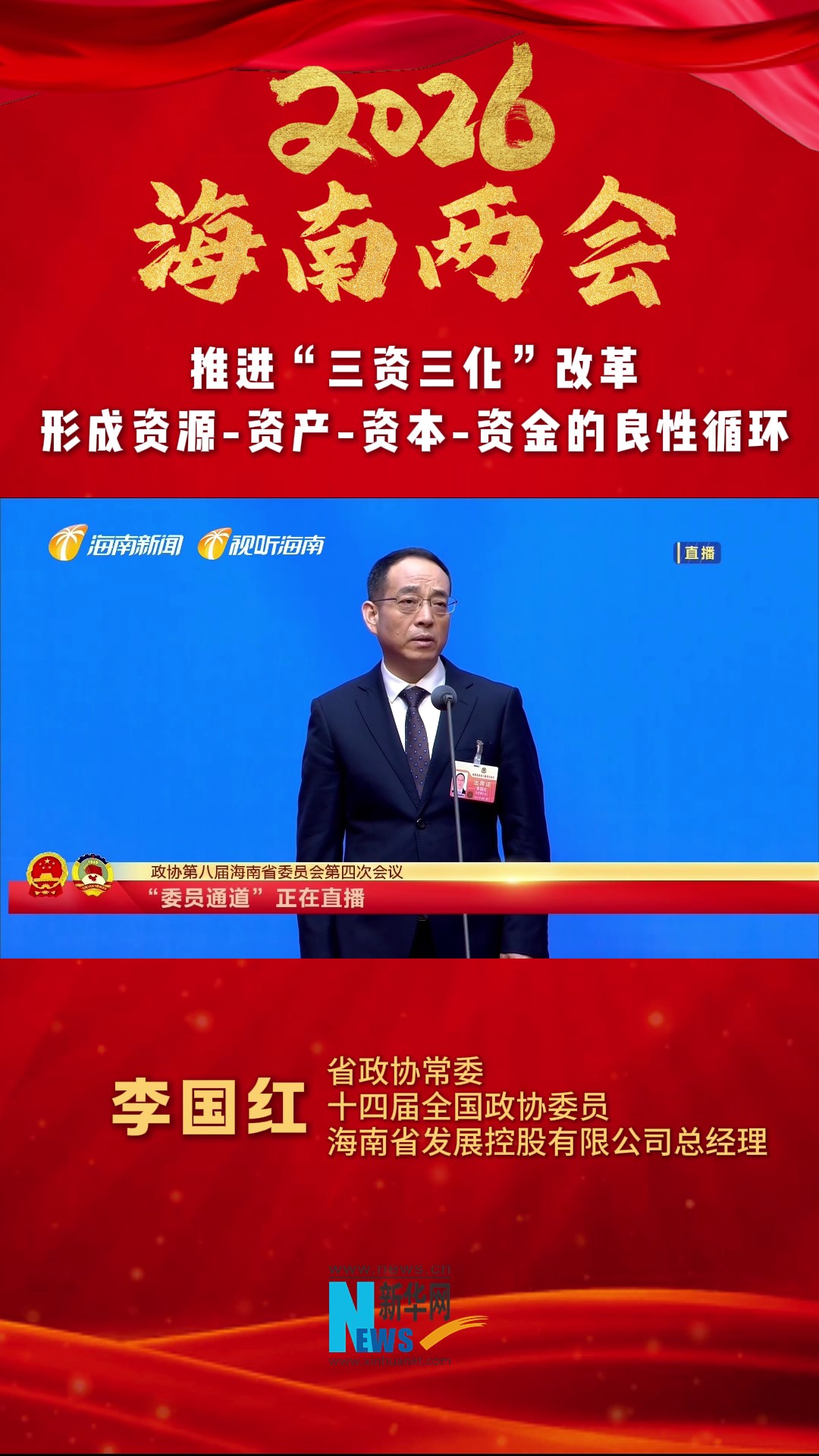 海南两会代表委员通道|李国红:推进“三资三化”改革 形成资源-资产-资本-资金的良性循环