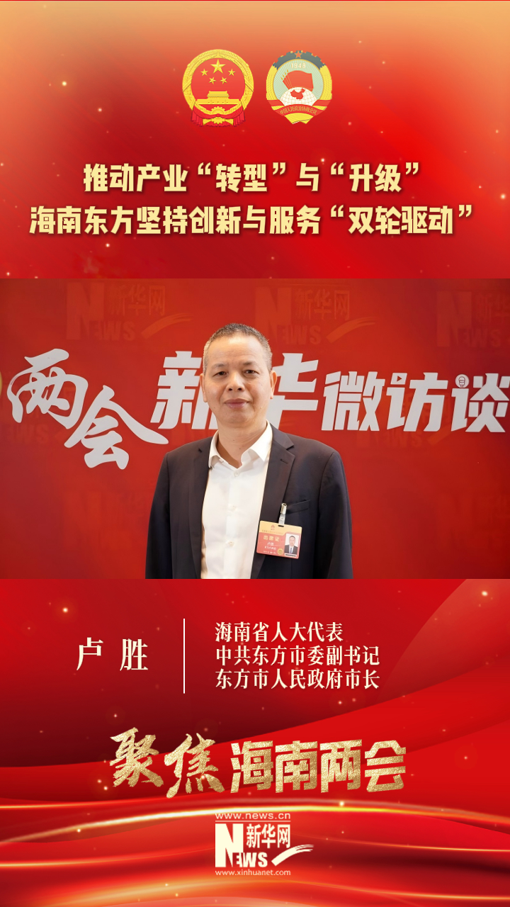 2026年海南省两会期间,海南省人大代表,中共东方市委副书记、市人民政府市长卢胜就东方重大产业项目的推进进度等接受新华网采访。