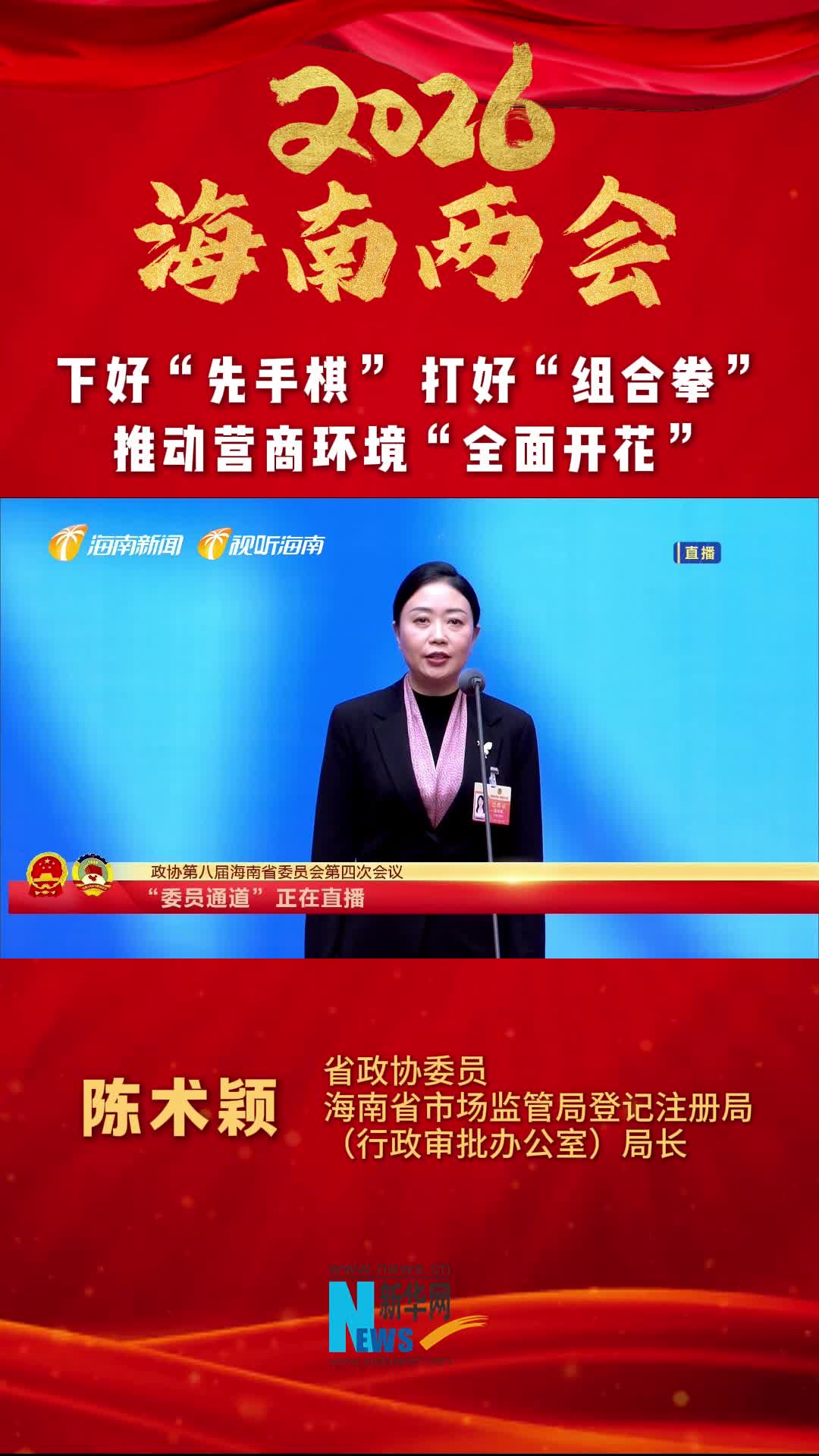 海南两会代表委员通道|陈术颖:下好“先手棋” 打好“组合拳” 推动营商环境“全面开花”