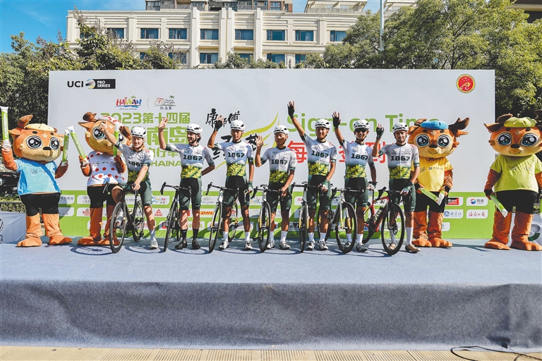 “车队从今年1月成立后,积极备战训练,不断参加国内各项赛事,以赛代练,磨炼团队配合度和爆发力。”车队注册单位负责人纪洋向记者介绍,2023赛季里,车队已参加中国公路自行车职业联赛多个地方站的比赛,以及平潭海洋杯国际自行车公开赛(福建)等多项国内高级别自行车赛事,队员们配合默契、敢于拼搏,部分队员取得赛段大中华最佳、车队团体第三名等多个好成绩。“作为本土和东道主车队,车队参赛目标为确保完赛,争取项目前列排名。”纪洋表示,车队还将利用环岛赛媒体资源,积极宣传五指山雨林天路体育旅游资源,展现永不放弃的拼搏精神。