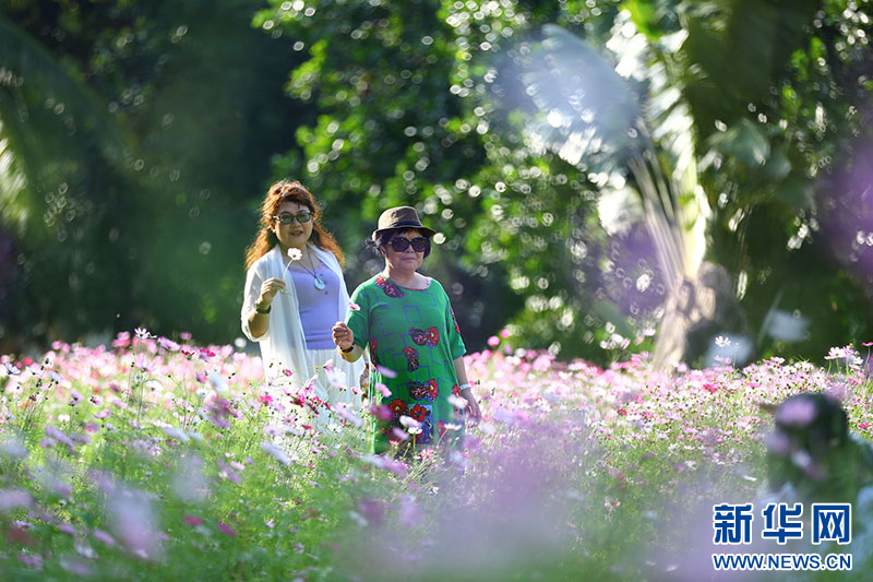初冬时节,游客在乘坐观光车三亚南山文化旅游区游览。新华网发