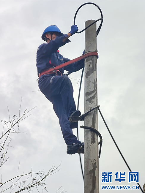 安徽支援队伍冒雨熔接纤芯。新华网发