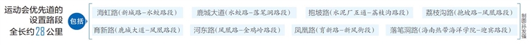 11月12日,海南日报全媒体记者从三亚市公安局交警支队获悉,为保障第十二届全国少数民族传统体育运动会(以下简称运动会)赛事交通和社会交通平稳运行,三亚在运动员接待酒店与开幕式主场馆、竞赛等场馆之间的主要涉赛道路上设置了运动会优先道。该车道将于11月22日0时至11月30日24时赛事活动期间启动,确保运动会赛事车辆安全、准点到达,同时采用科学精准管理措施,最大限度减少对百姓工作生活出行的影响。