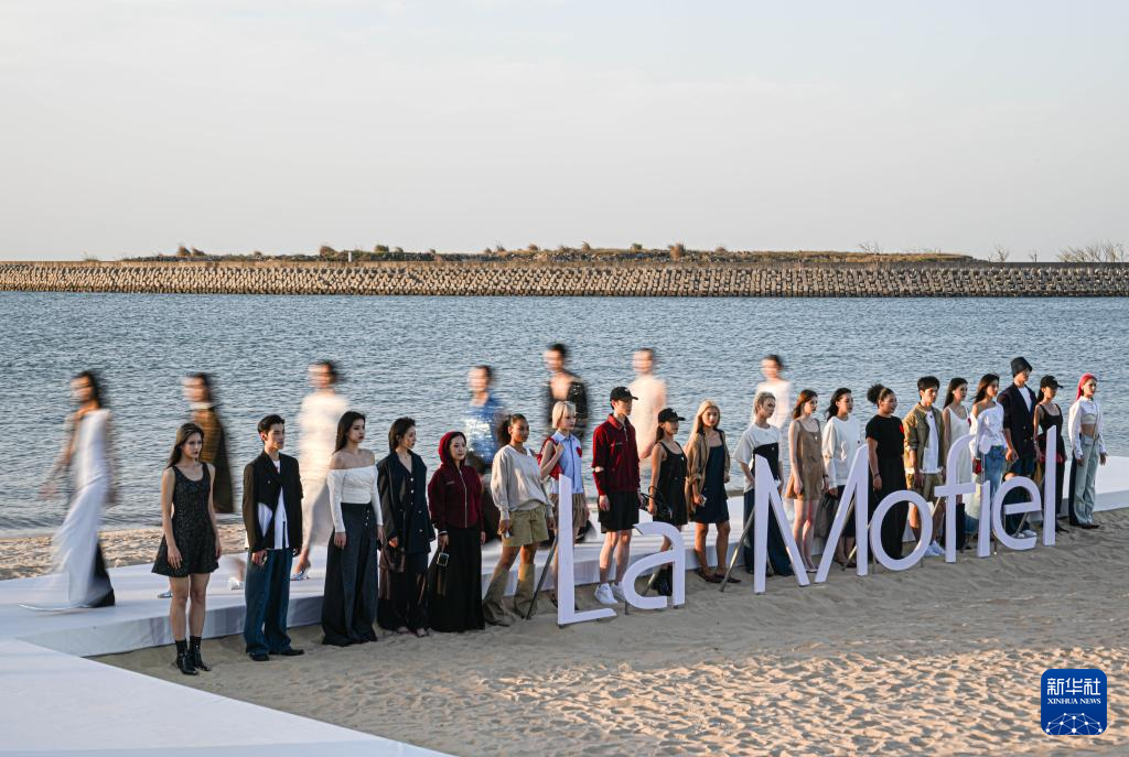 4月16日在第五届消博会海边秀场拍摄的“La Mofiel”时装秀。新华社记者 蒲晓旭 摄