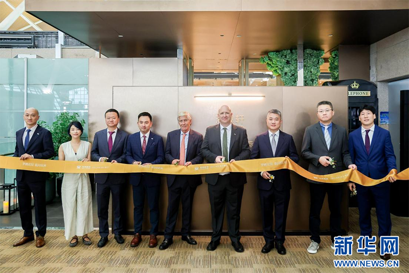 “梦栖花园,航向绿洲”主题合作升级发布会暨联名贵宾厅揭幕仪式现场双方领导合影。新华网发