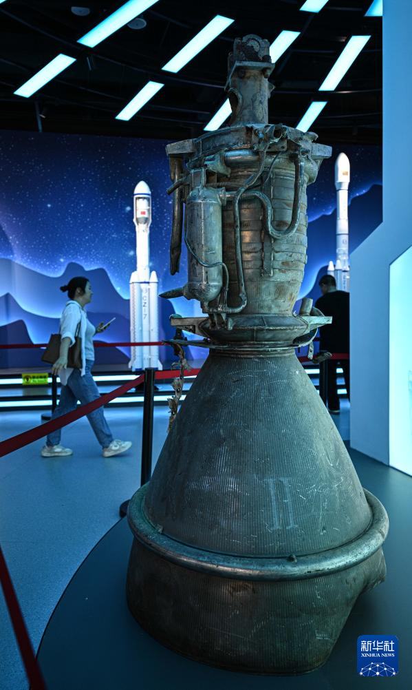 10月7日在文昌航天科普中心拍摄的火箭残骸。新华社记者 蒲晓旭 摄