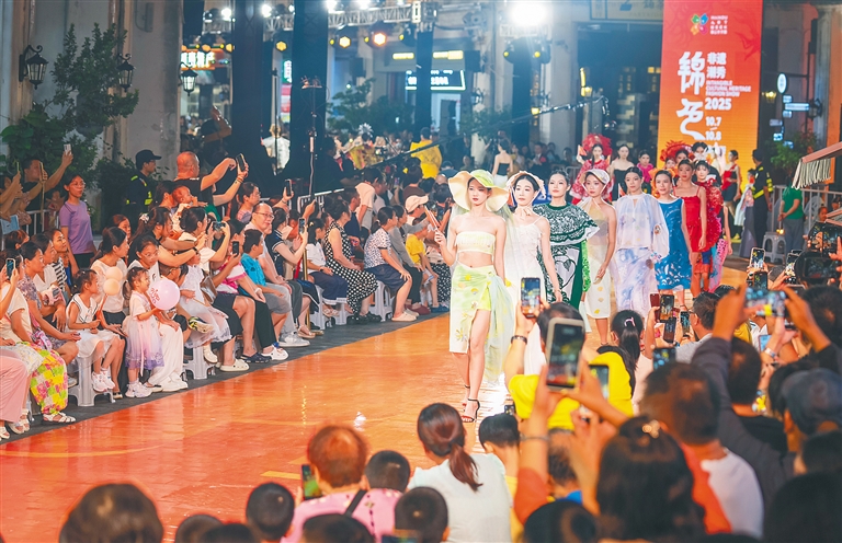 10月7日,2025海口艺术周系列活动之“锦色·2025非遗潮秀”在海口骑楼老街精彩上演。海南日报全媒体记者 李天平 摄