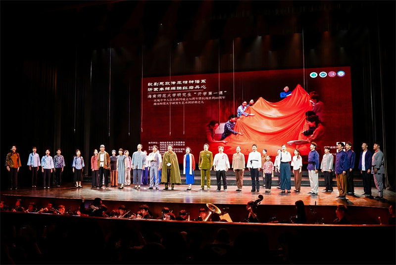 同学们还现场沉浸式感受《沂蒙山》《江姐》等红色歌剧的艺术魅力,在理论与艺术的碰撞中开启研究生生涯的精神洗礼。海南师范大学青年交响乐团现场伴奏,演员由研究生艺术团全体成员组成,展现了学校艺术教育与思政育人深度融合的丰硕成果。