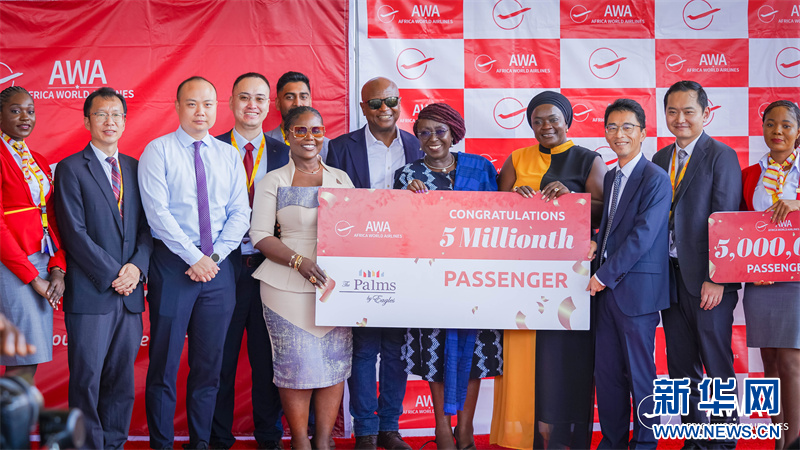 新海航加纳航空旅客承运量突破500万人次,图为庆祝活动现场。新华网发