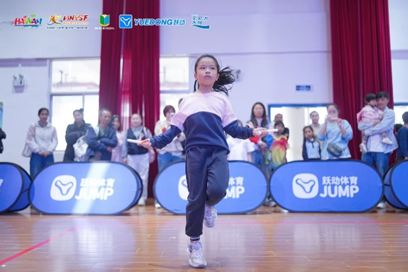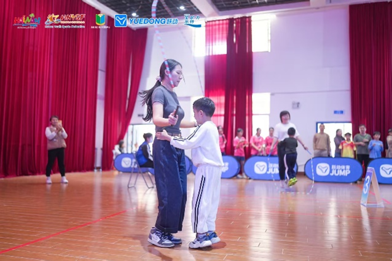 在计数赛中,小选手们充分展示其跳绳技巧和速度。每当有孩子完成一个漂亮的跳跃,现场都会爆发出热烈的掌声和欢呼声。