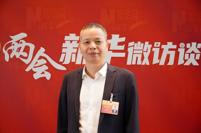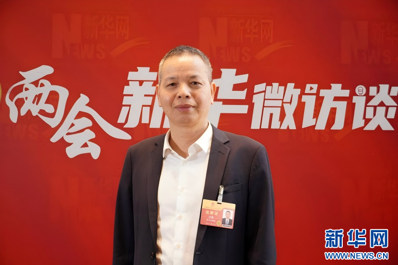 海南省人大代表,中共东方市委副书记、市人民政府市长卢胜接受采访。新华网发(张思雨 摄)