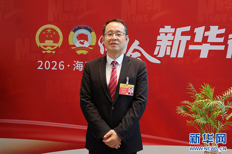 海南省人大代表、五指山市委书记朱宏凌接受采访。新华网发