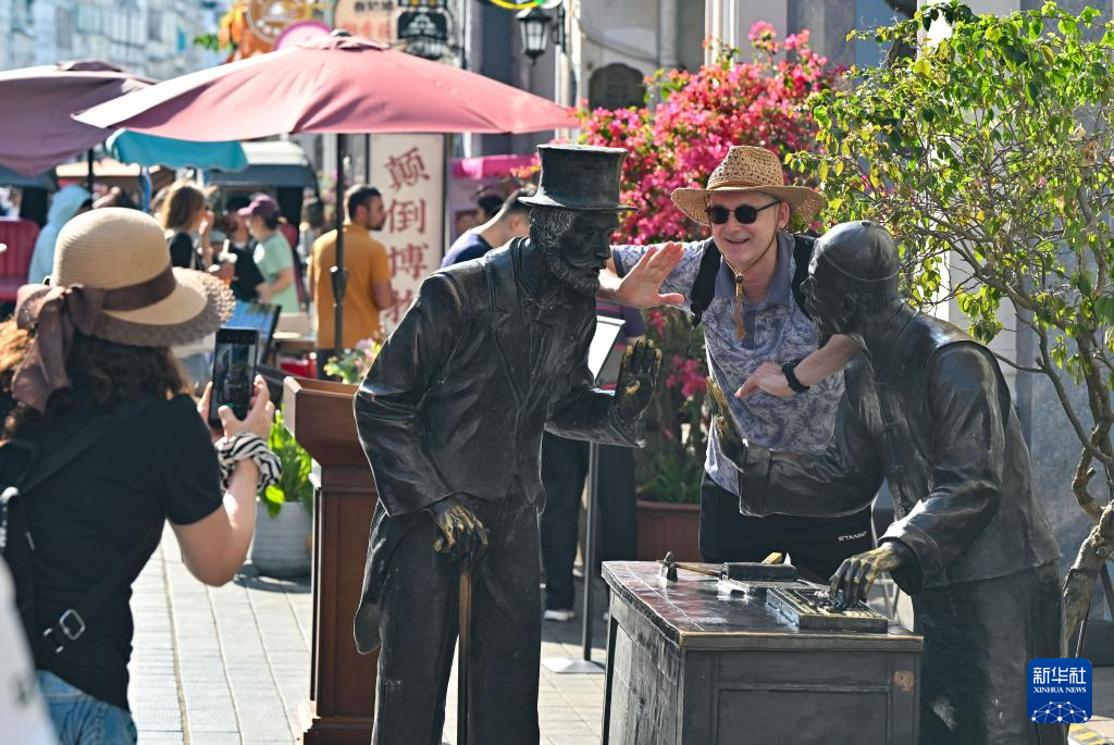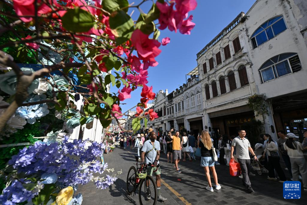 春节假期首日,许多游客来到海口骑楼老街游玩,乐享假期。新华社记者 郭程 摄