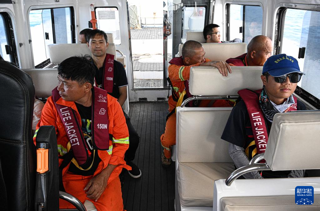 3月19日,乘客乘坐海上交通保障船由海南三沙永兴岛前往赵述岛。新华社记者 蒲晓旭 摄