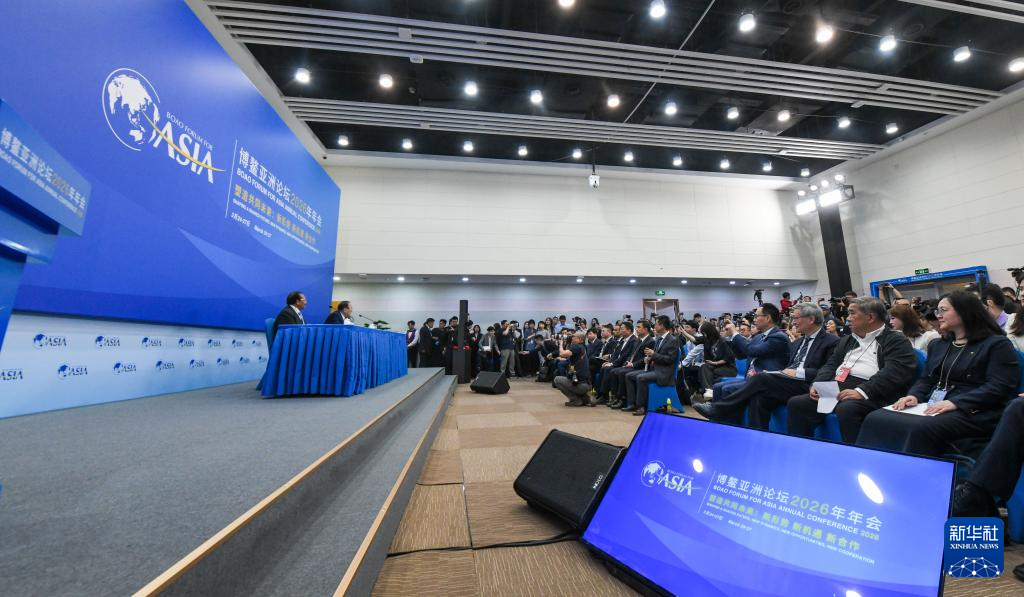 这是3月24日在海南博鳌拍摄的博鳌亚洲论坛2026年年会新闻发布会暨旗舰报告发布会现场。新华社记者 杨冠宇 摄