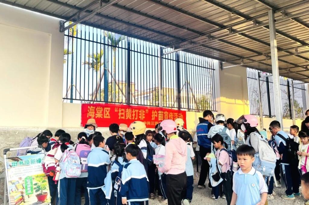 为深入推进未成年人“护苗”专项行动,近期,三亚市海棠区委宣传部联合相关单位,先后在进士小学、龙海共青学堂、龙海小学开展“扫黄打非”及“绿书签”主题宣传活动,引导青少年树立绿色阅读、文明上网、安全防护意识,全力营造清朗健康的成长环境。
