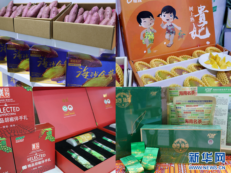 海沙金薯、三亚贵妃芒、大坡胡椒、白沙绿茶亮相第六届消博会。新华网发(谢雅妮 摄)