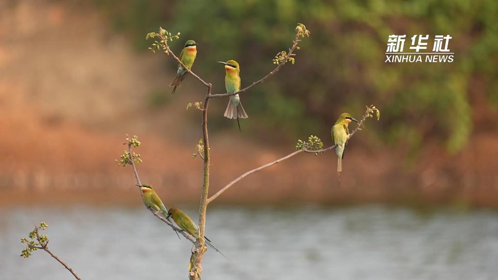 近日,成群的栗喉蜂虎陆续飞抵海南省澄迈县花场湾红树林自然保护区,开启一年一度的繁殖栖息季。