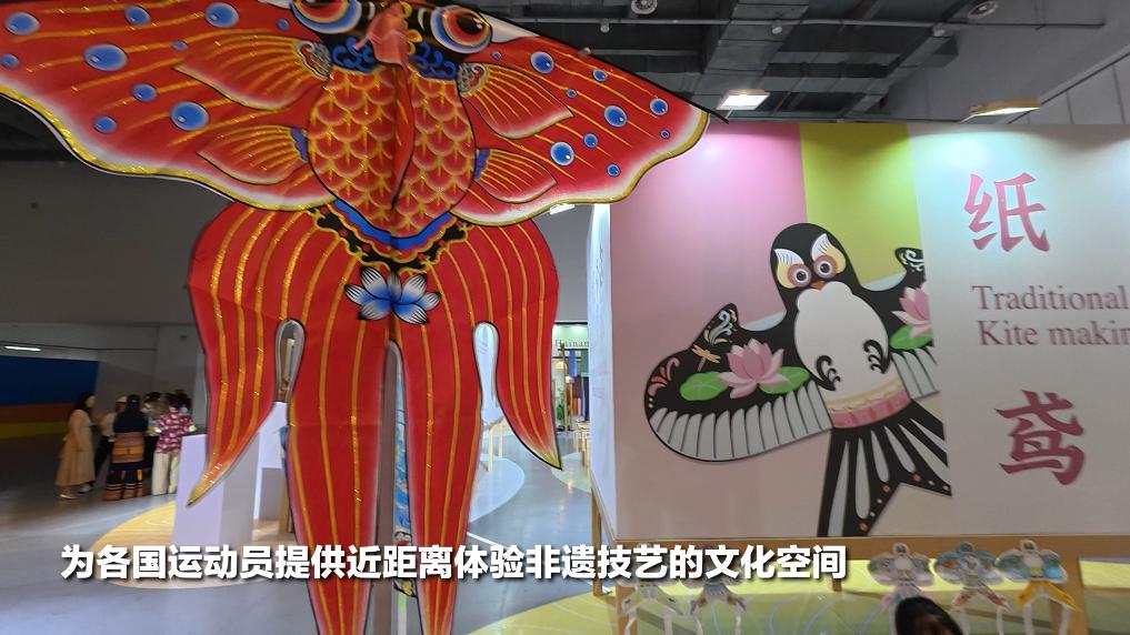 剪纸、书法、黎锦、椰雕……当45个国家和地区的运动员齐聚三亚,运动员村里的非遗文化展馆成了最热闹的地方。