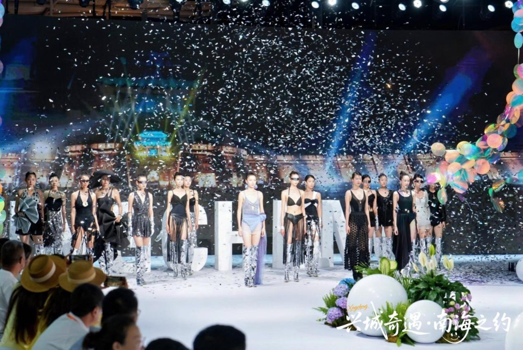 4月25日,三亚海昌梦幻海洋不夜城变身时尚秀场,“潮涌南北 共织蔚蓝”主题泳装大秀精彩上演,60套精品泳装依次亮相。海浪与灯光相映,T台之上的时尚表达,集中展现兴城泳装四十年产业积淀。