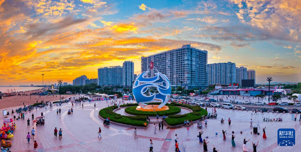 海阳海边的凤凰广场上,雕塑“海之魅”是根据第三届亚沙会会徽创作的。海阳市委宣传部供图