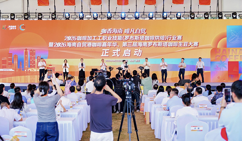 4月28日,2026咖啡加工工职业技能(罗布斯塔咖啡烘焙)行业赛暨2026海南自贸港咖啡嘉年华、第三届海南罗布斯塔咖啡生豆大赛,在海南省澄迈县福山咖啡文化风情镇启幕。
