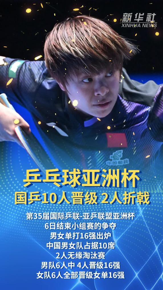 乒乓球亚洲杯:国乒10人晋级 2人折戟